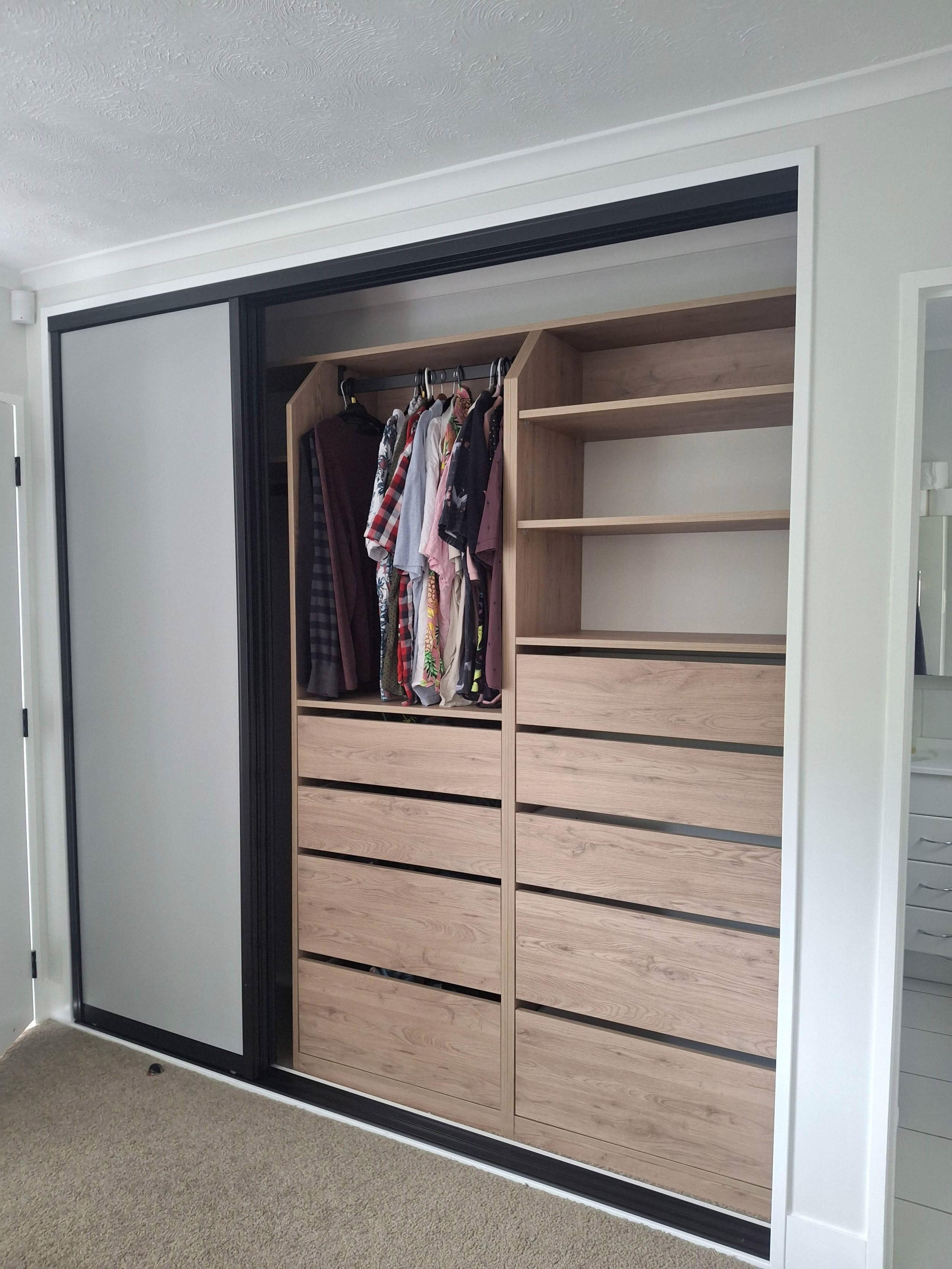 At Wardrobes Direct Silverdale and our Mt Wellington and Wellington showrooms, every wardrobe door is made to measure, ensuring a seamless fit that looks intentional — not like a generic add-on.