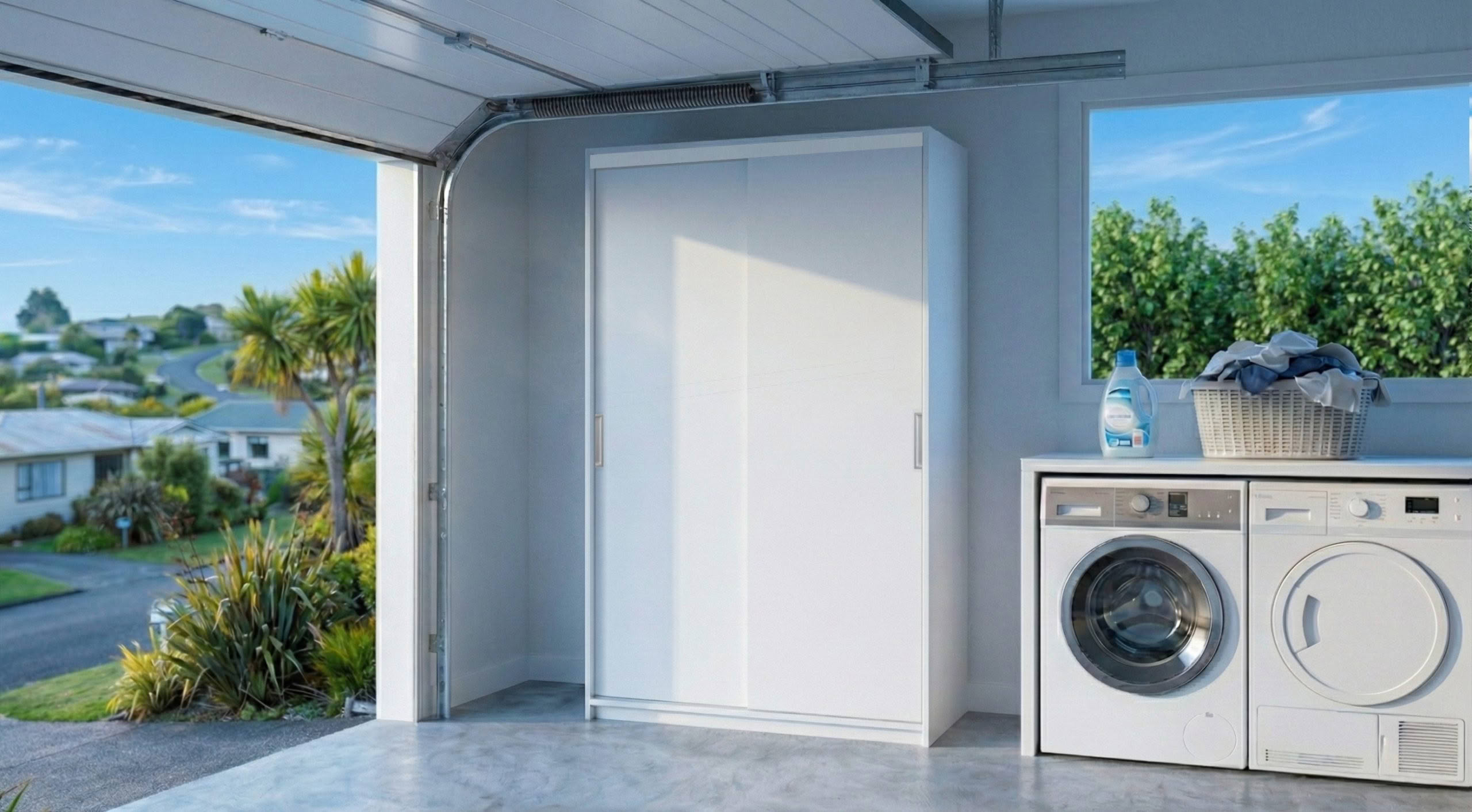 Garastore Series include sliding white melamine doors for optional space saving, especially handy for garages that are tight for space!